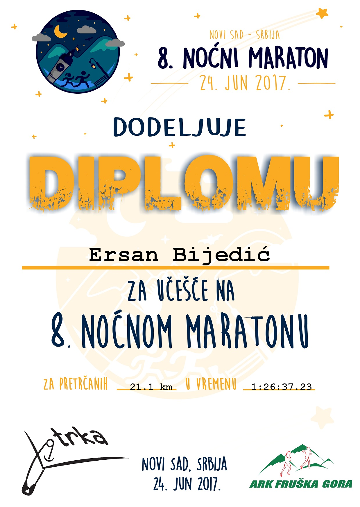 Čapljinac Ersan Bijedić na osmom noćnom polumaratonu, koji se održao u Novom Sadu, ostvario je zavidan rezultat.