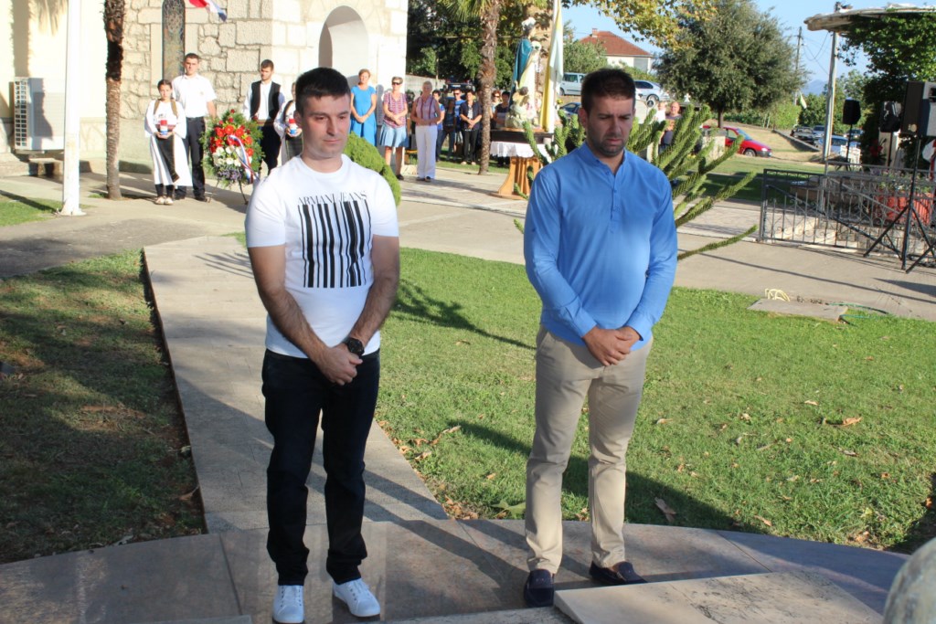Vijenci su položeni kod spomenika koji je podignut 1997. godine, čiji je autor Josip Antunović, a koji prikazuje dvije ruke koje čvrsto drže Hercegovački kamen, odnosno Domovinu.