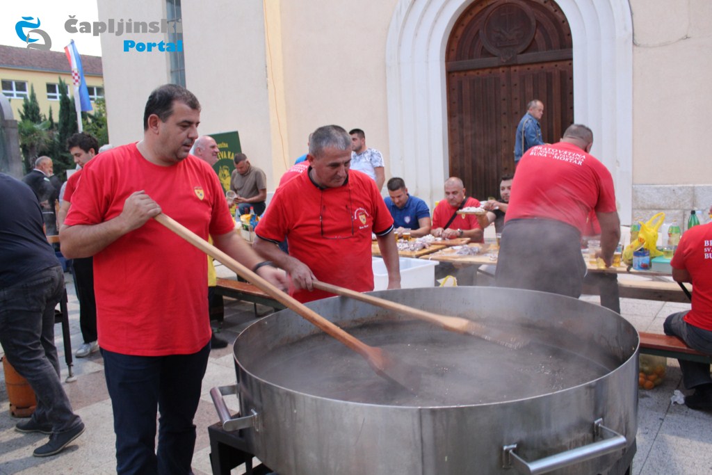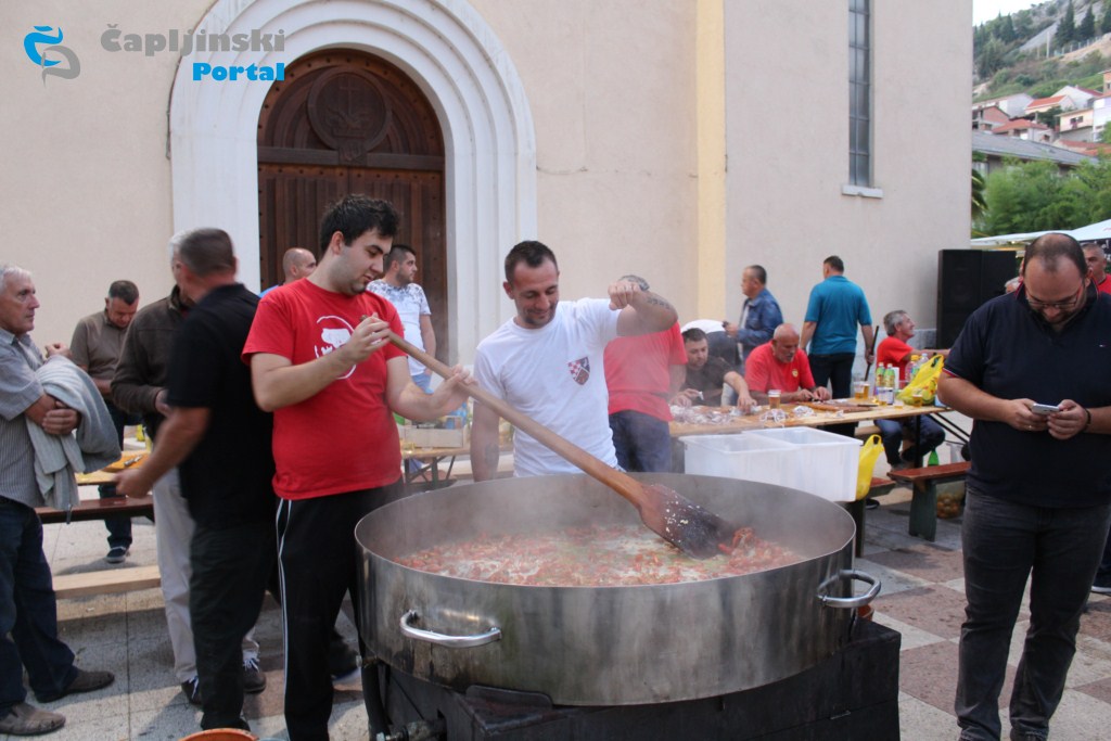 Više tisuća ljudi okupilo se u dvorištu crkve u Čapljini, gdje je održana ribarska večer, a spremali su se brudet, crni rižot, pržena srdela i ostale delicije.