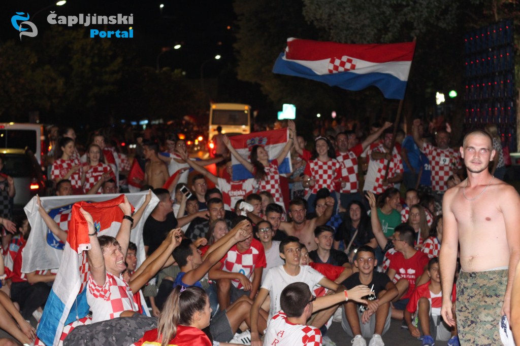 Vatreno i zabavno bilo je sinoć na ulicama Čapljine. Najmlađi i najstariji navijači izašli su na ulice i zajedno s ostalim građanima proslavili su prolazak Hrvatske u finale Svjetskog prvenstva.