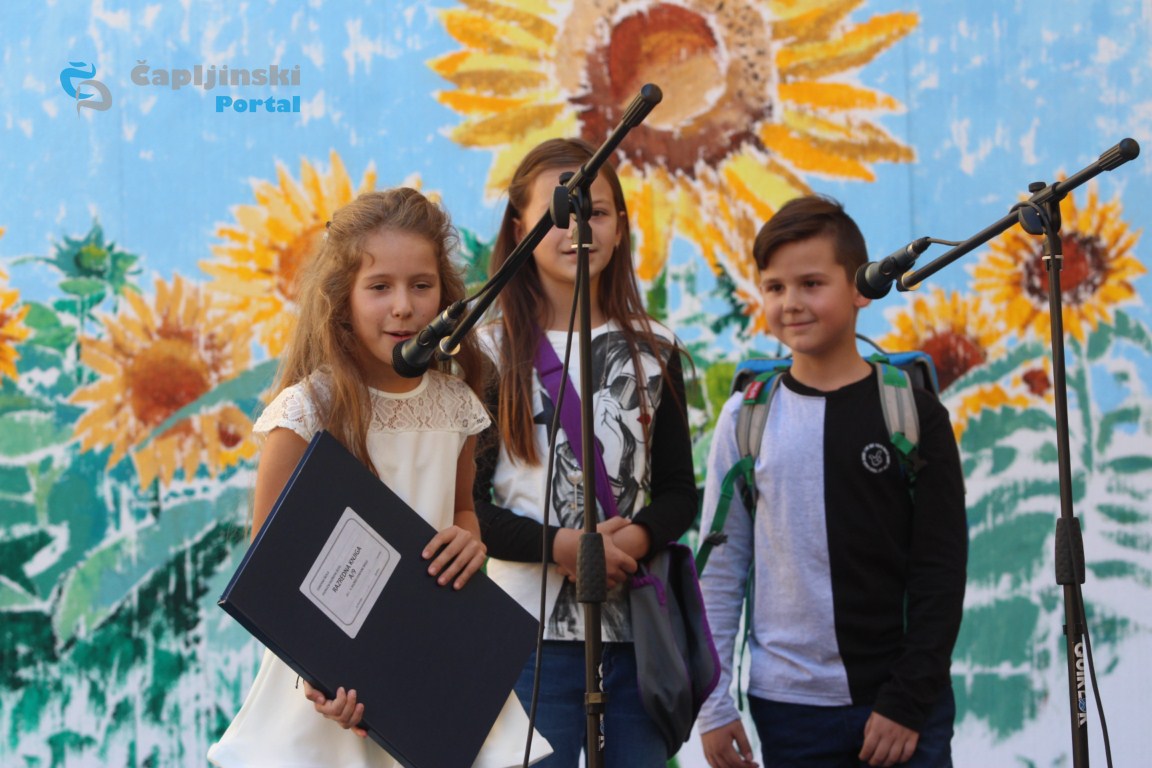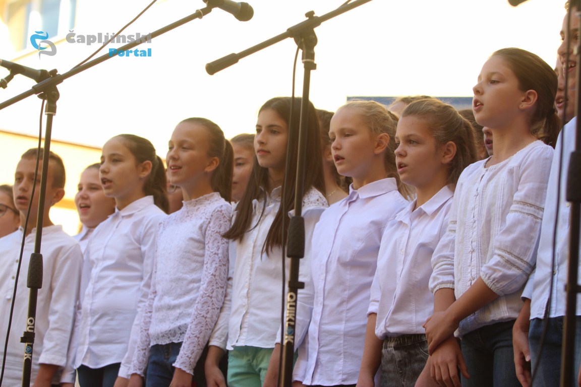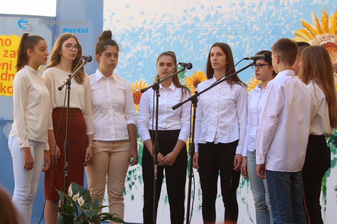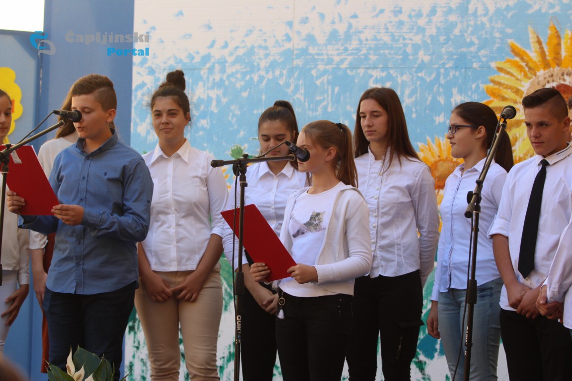 U dvorištu škole održana je u svečana priredba, na kojoj se veliki broj učenika predstavio recitacijama, pjesmama te igrokazima.