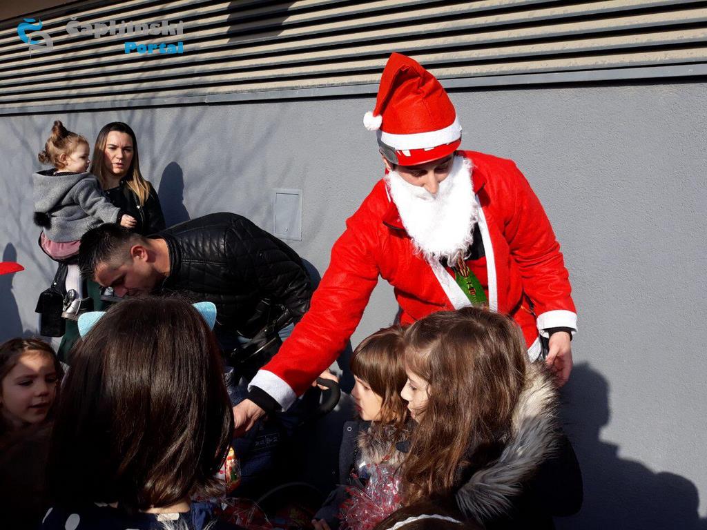 Na oduševljenje mnogobrojnih mališana, Djedice su, nakon spuštanja, počele dijeliti poklone.