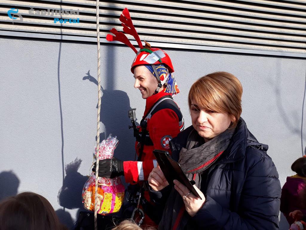Radosti čapljinskih mališana nije bilo kraja, jer na ovaj način po prvi put u našem gradu, mogli su, zahvaljujući HGSS-u stanica Čapljina, vidjeti Djeda Božićnjaka kako se spušta sa zgrade.