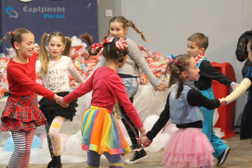 U dvosatnom programu u Trebižatu bilo je veselo i razigrano, a mališani su uživali u plesu, pjesmi i poklonima.
