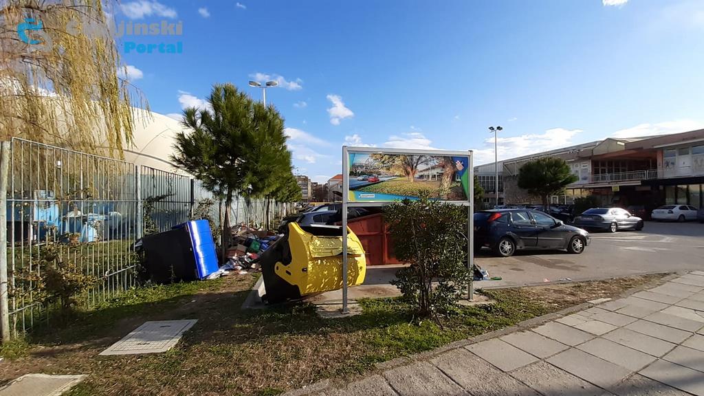Kontejneri su razbacani, polomljeni, a smeće iz njih se nalazi po parkingu ispred Gradske sportske dvorane.
