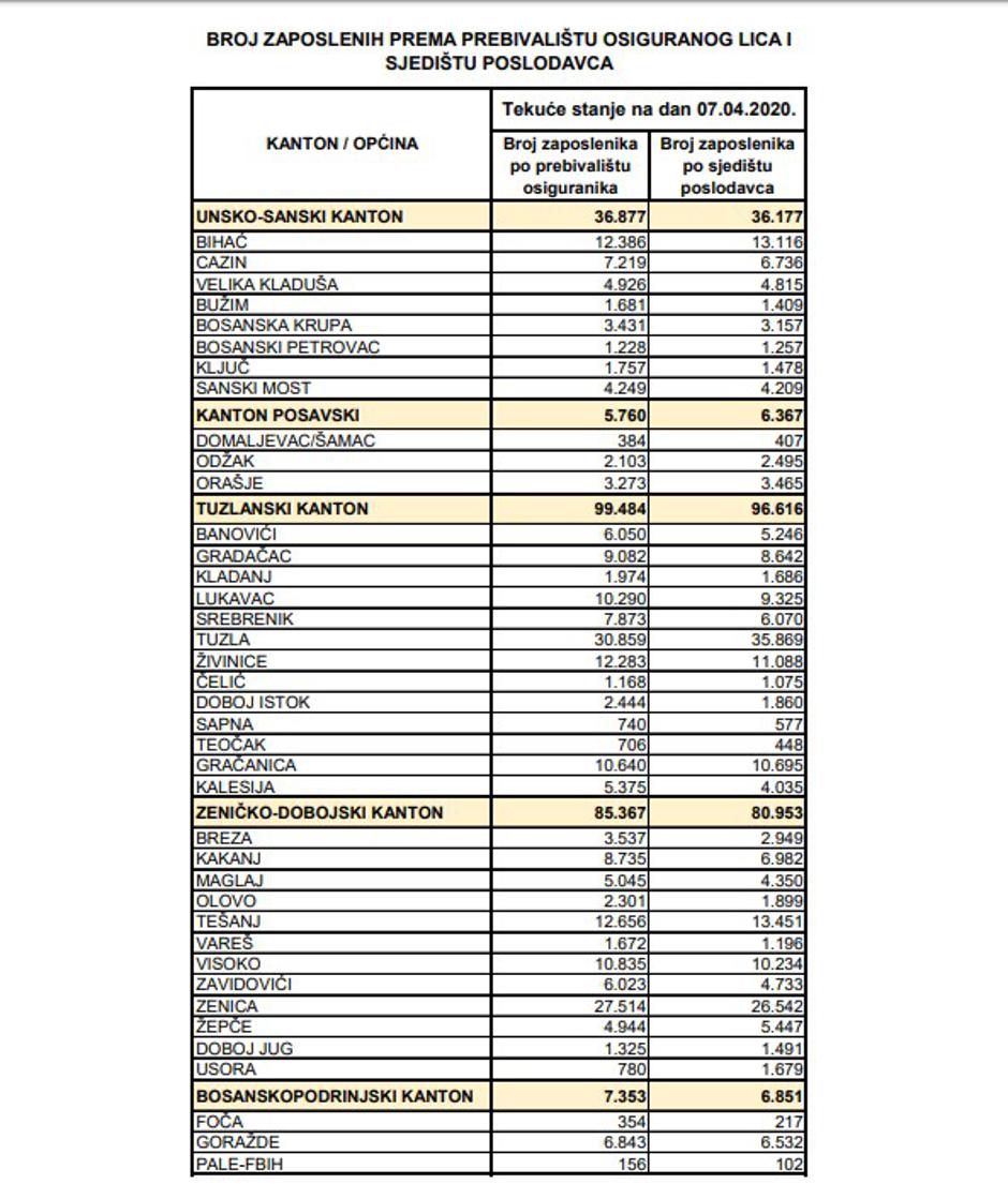 Iz Porezne uprave navode kako su objavljeni podaci o zaposlenim osobama kreirani na osnovu obrazaca koji su procesuirani do posljednjeg statusa i proslijeđeni nadležnim izvanproračunskim fondovima.