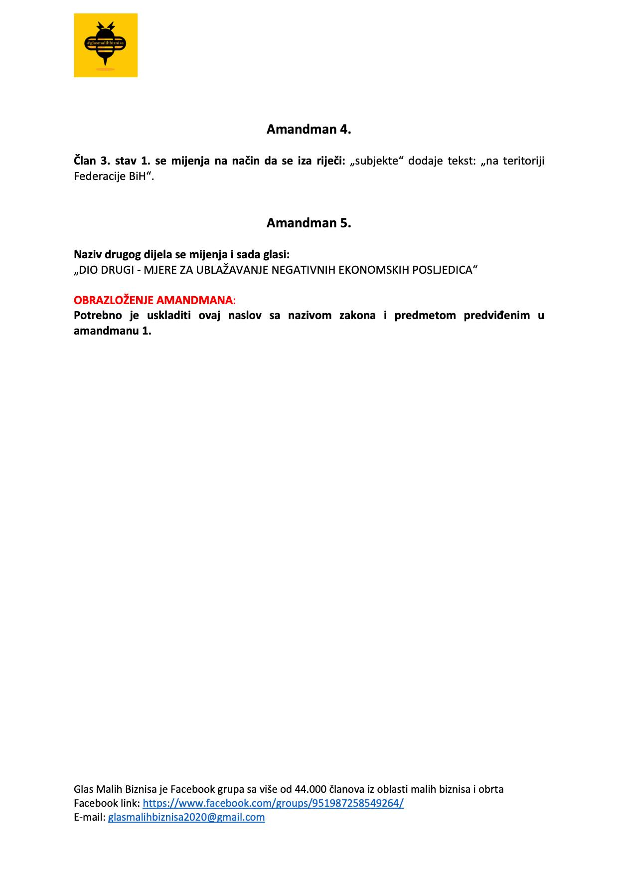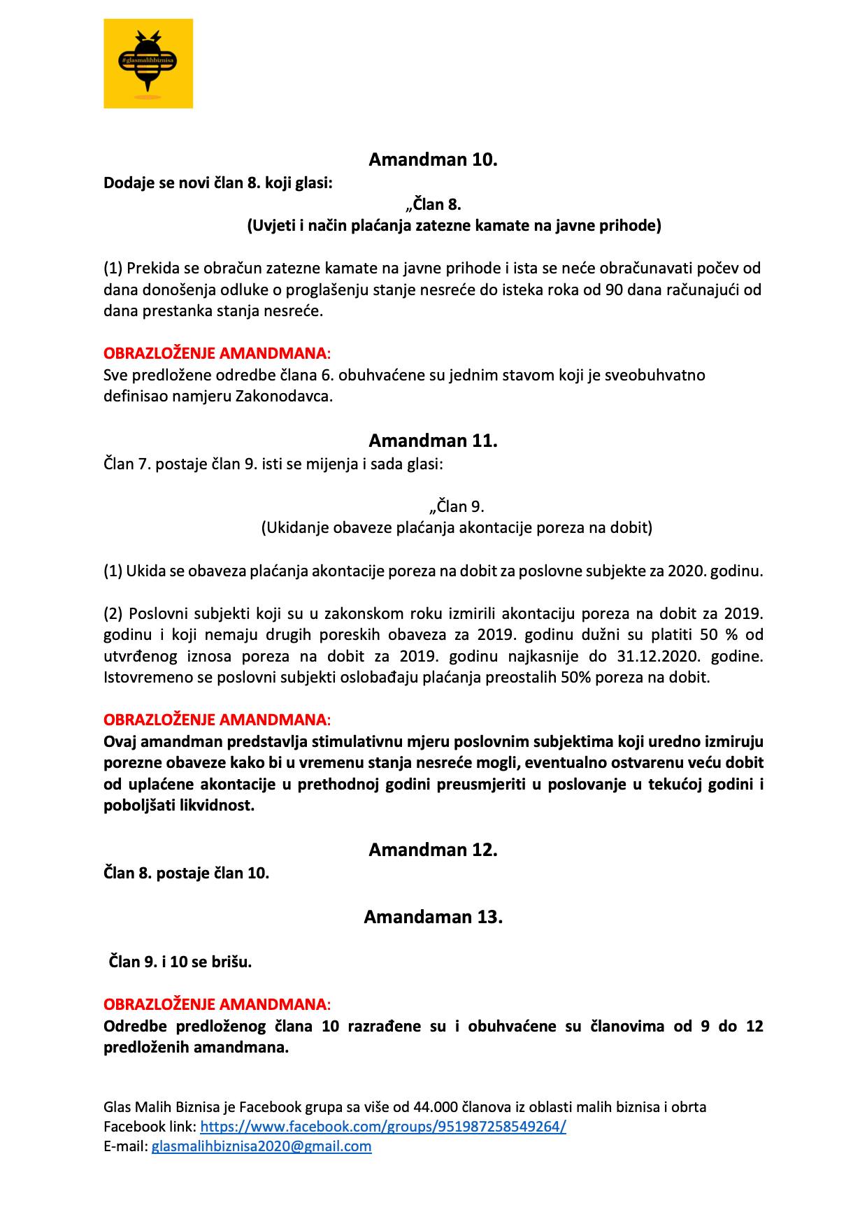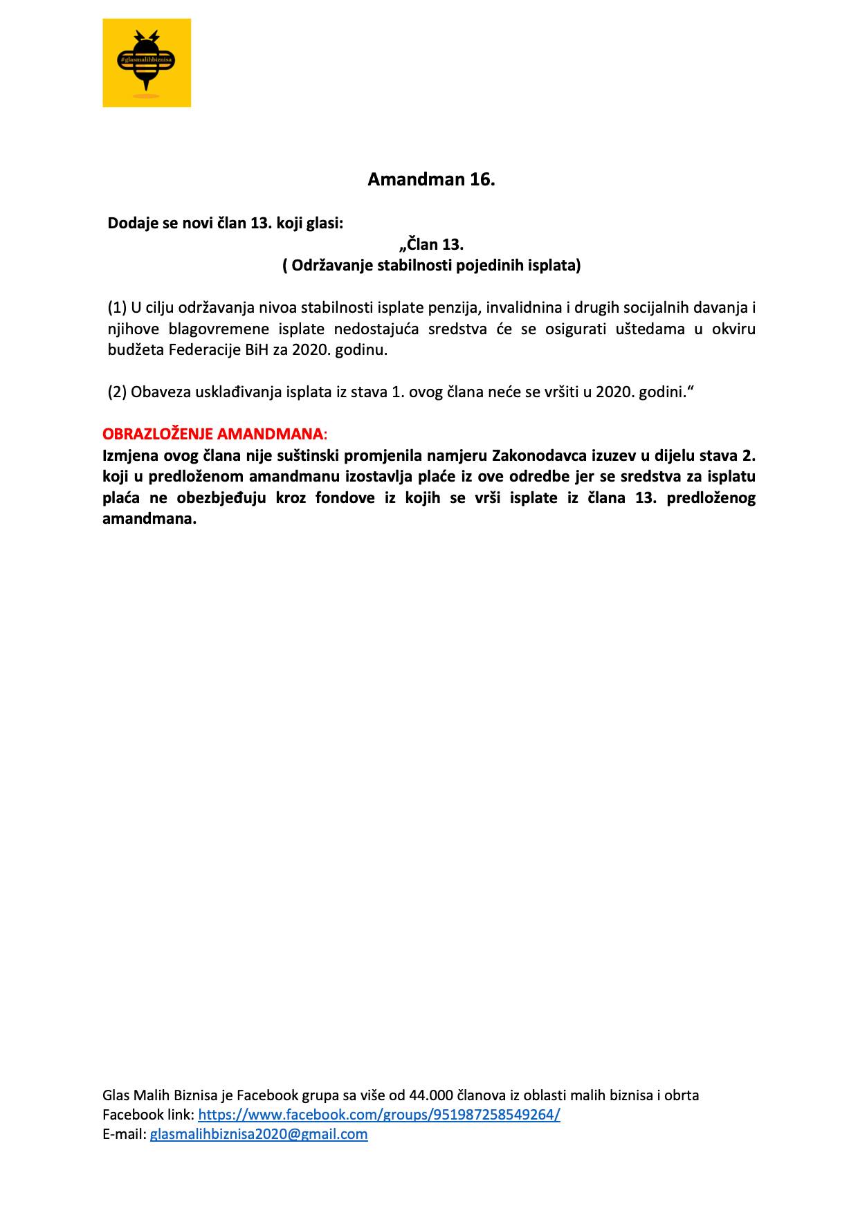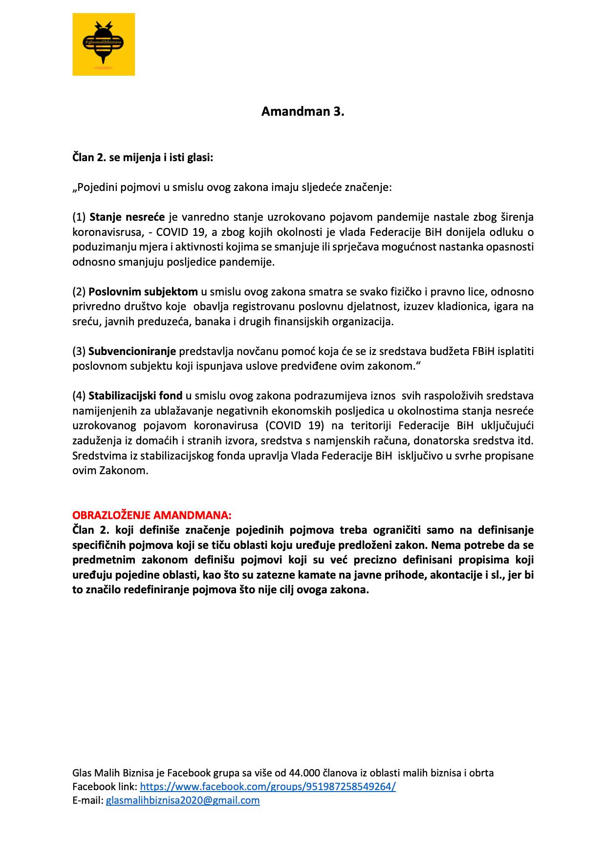 Grupa ”Glas malih biznisa” koju je nakon početka pandemije koronavirusa u BiH i njezinog izrazito negativnog utjecaja na ekonomiju pokrenuo poduzetnik Ejub Kučuk uputila je 18 amandmana na stabilizacijski zakon Vlade FBiH popularno nazvan “korona-zakon”.