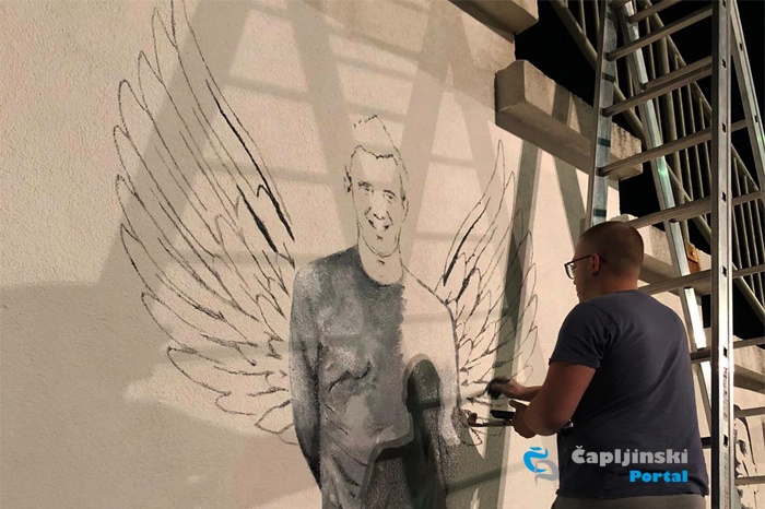 Lik Domagoja Zubca s nacrtanim krilima sada tako krasi tribine Sportskog centra u Čapljini, sami Sportski centar i naš grad.