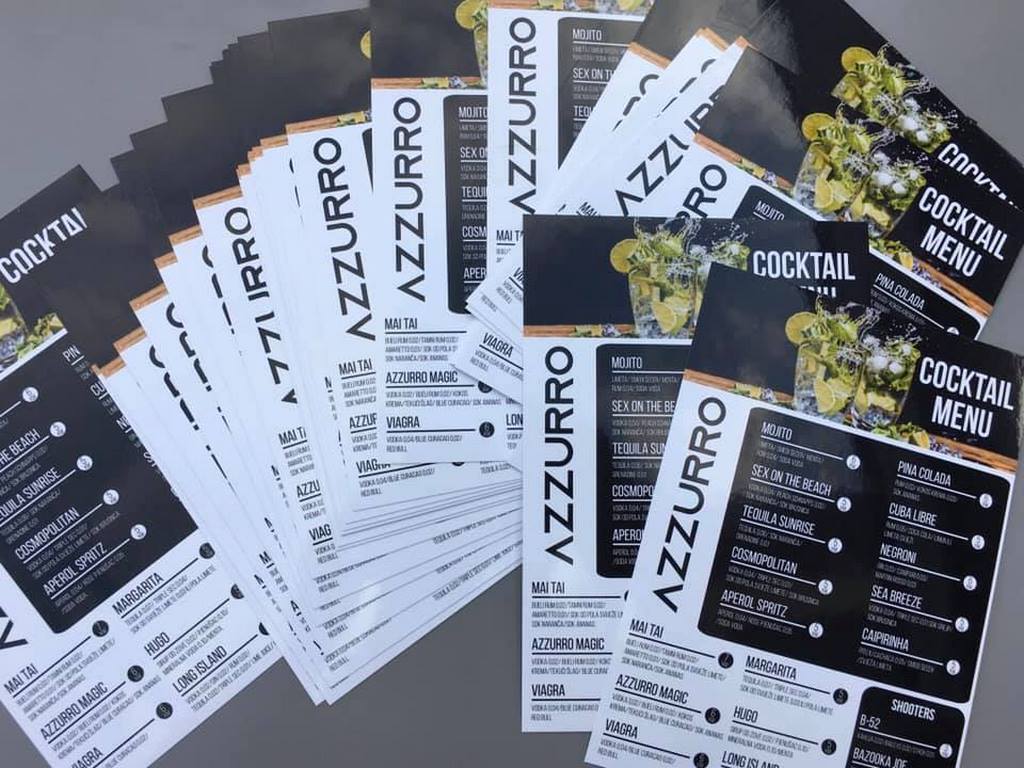 - sve vrste tiska (pozivnice, posteri, vizitke. cjenovnici za kafiće, jelovnici za restorane, majice…)