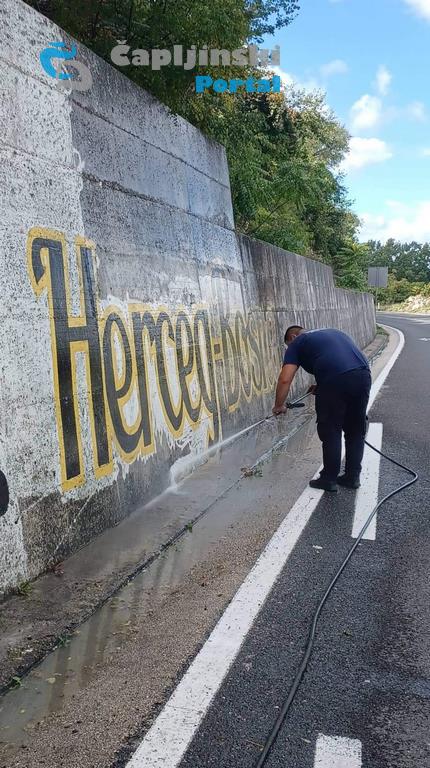 FOTO | Očišćen mural HRHB u Dračevu; uskoro slijedi i njegova obnova