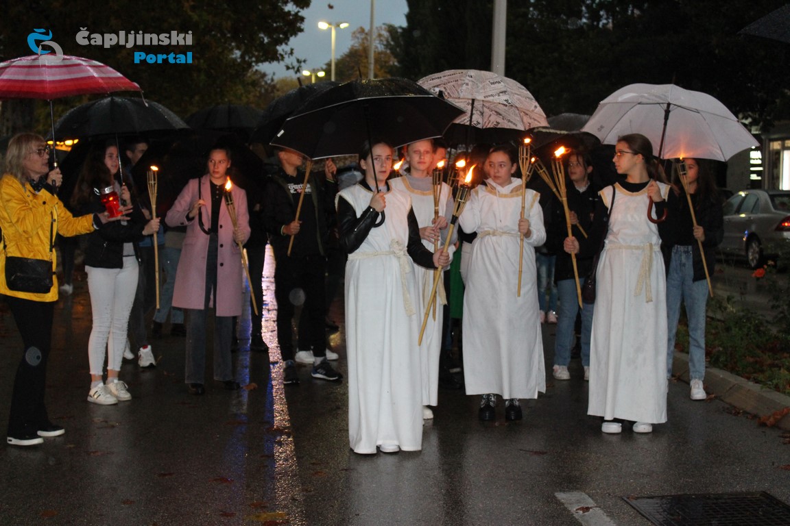 Djeca iz Dječjeg vrtića Čapljina, učenici Osnovne škole ”Vladimir Pavlović”, Osnovne škole ”Lipanjske zore” i Srednje škole Čapljina zajedno s učiteljima, nastavnicima, profesorima i građanima, na Trgu kralja Tomislava, ali i sportaši, kulturni djelatnici te građani formirali su kolonu sjećanja koja je prošla od Trga kralja Tomislava kraj pošte sve do Trga hrvatske slobode.