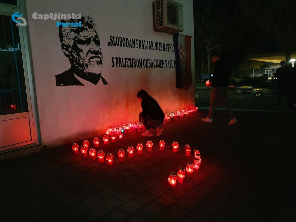 U Ulici Mate Bobana, pored grafita generala Slobodana Praljka, upaljene su svijeće povodom obilježavanja pete godišnjice njegove tragične smrti.
