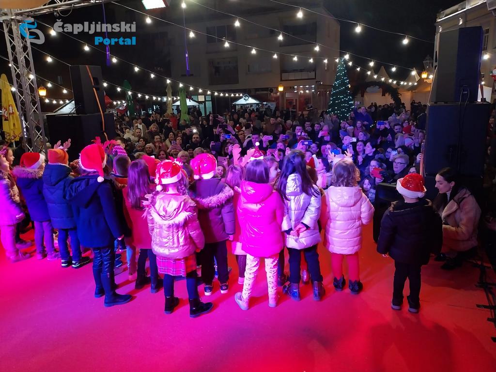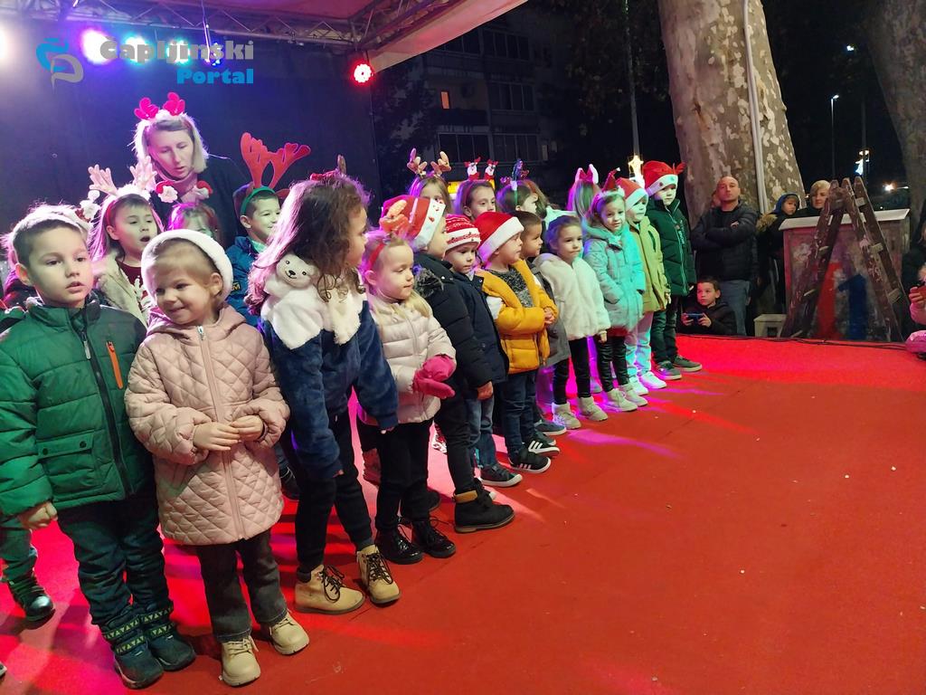 Veliki pljesak i osmijehe kod okupljeni izazvali su na Trgu kralja Tomislava večeras mali vrtićani.