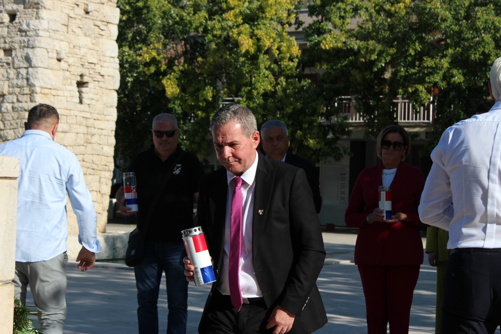 Izaslanstvo Gradske uprave, predvođeno gradonačelnikom Smijanom Vidićem, zapalilo je svijeće i položilo vijence na Trgu hrvatske slobode u spomen na hrvatske branitelje.