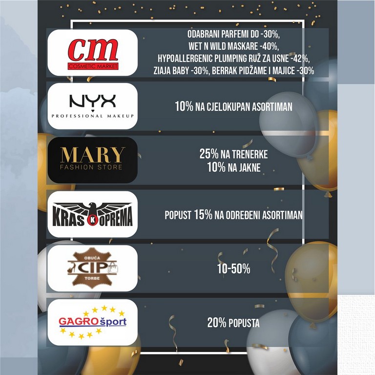 Za vas smo pripremili dva dana odličnih akcijskih popusta u svim trgovinama, gastro iznenađenja, nagradno izvlačenje, kao i zabavu za naše najmlađe.