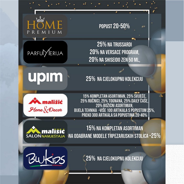 Cijenjeni kupci, ovog petka i subote,17.i 18.11.vaš omiljeni prodajni centar Mališić Međugorje slavi 25.rođendan.