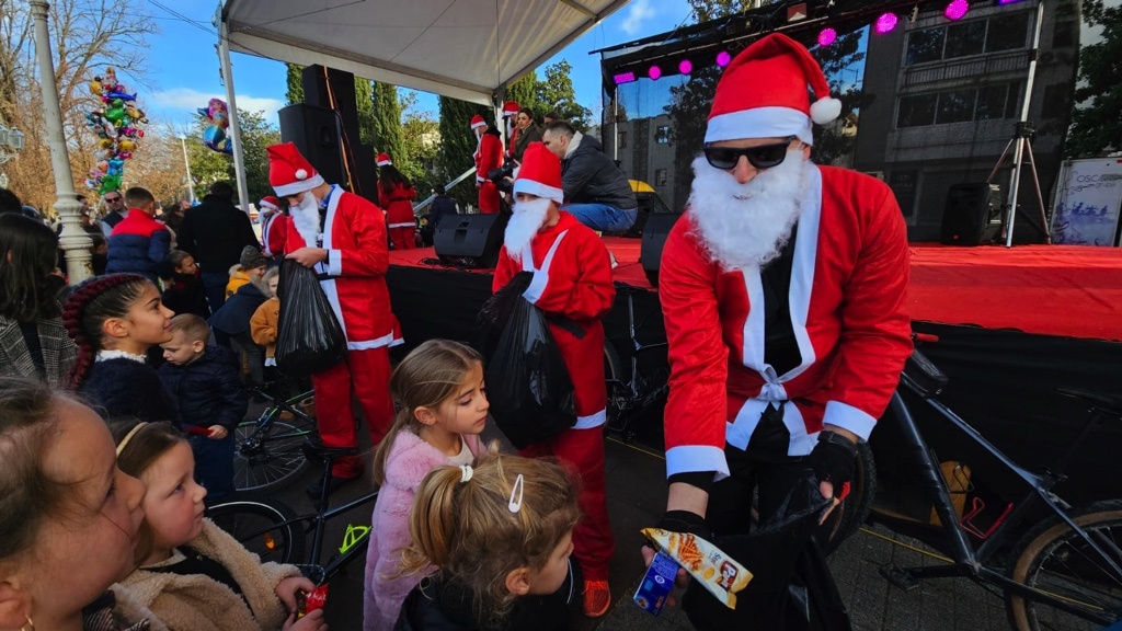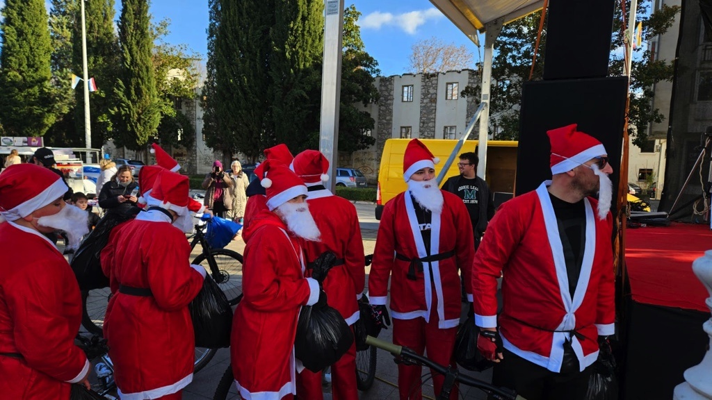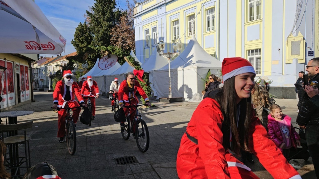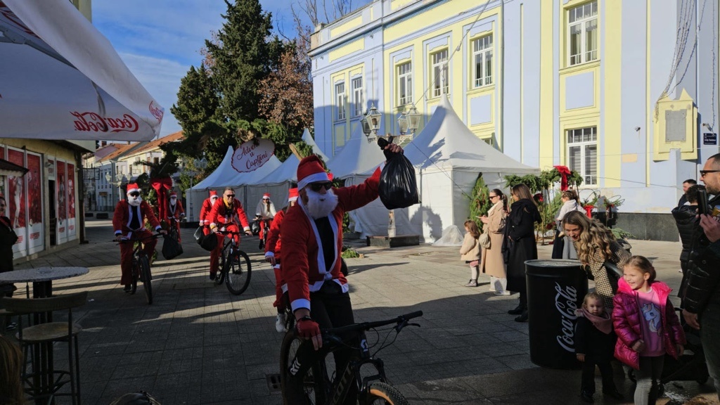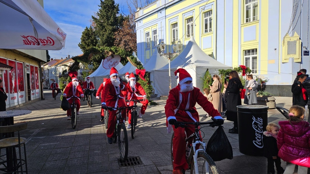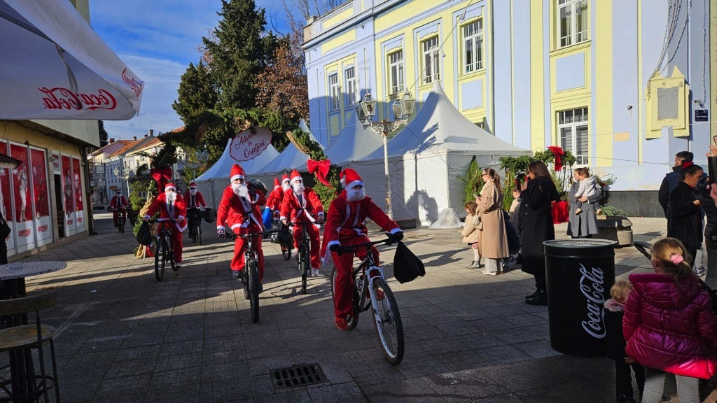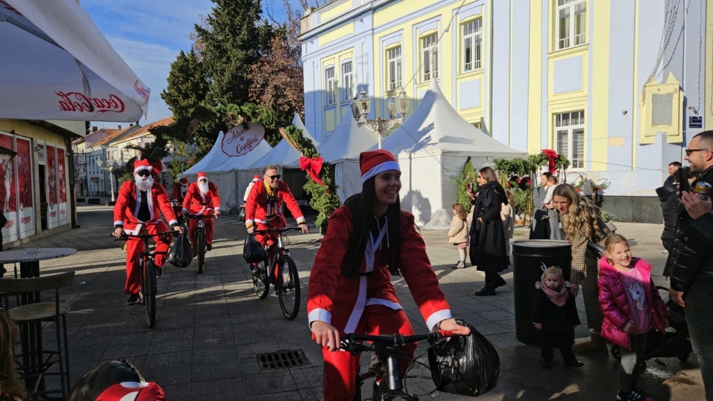 Odjeveni u prepoznatljiva crvena odijela Djeda Božićnjaka, dolaze u centar grada na biciklima, stvaraju veselu atmosferu i najmlađima dijele prigodne poklone.