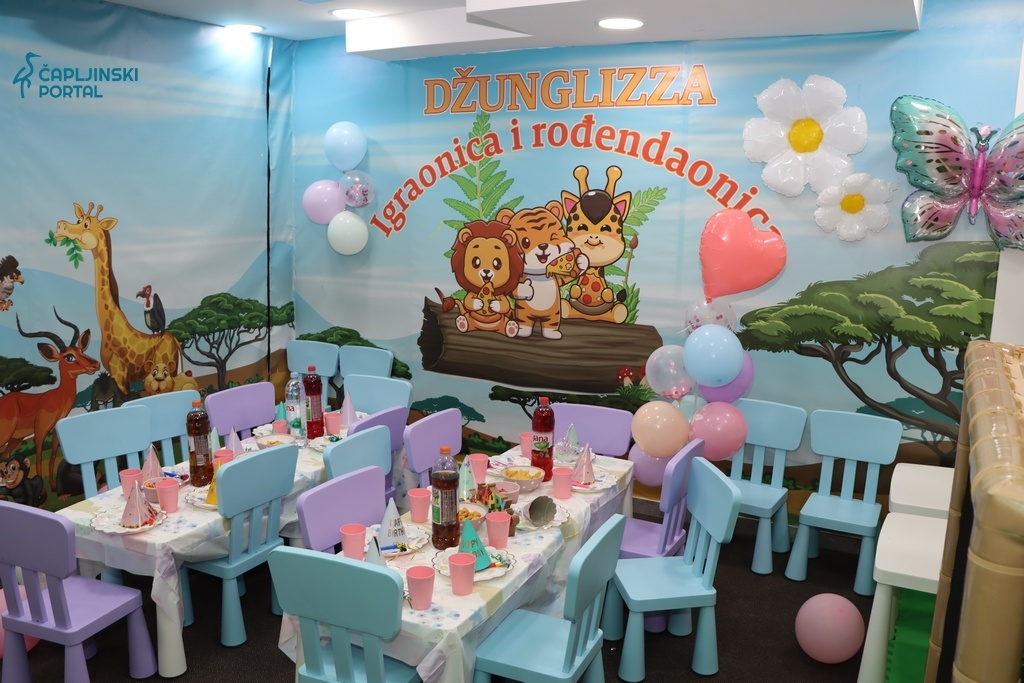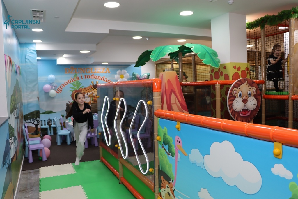 S ukupnom površinom od 340 kvadratnih metara, od kojih je 160 namijenjeno igraonici, a 130 pizzeriji, ovaj objekt pod imenom ”Džunglizza” obećava vrhunsku zabavu za najmlađe i ugodno druženje za roditelje.