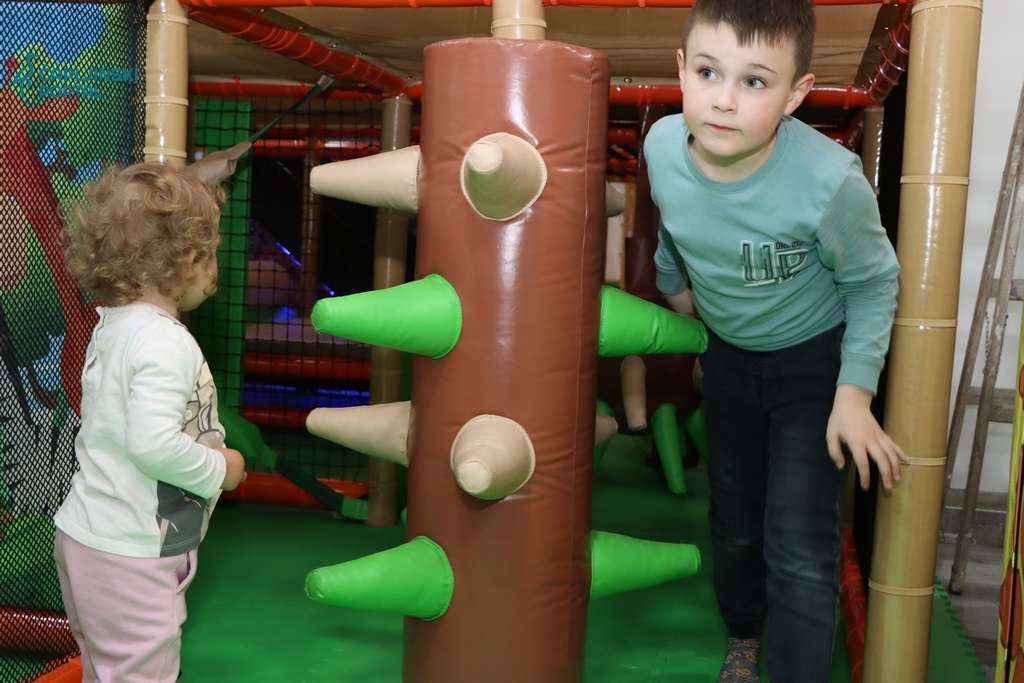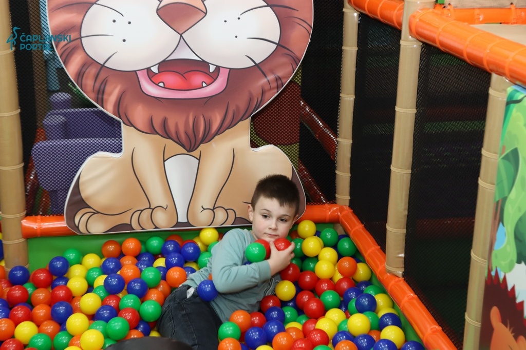Prostor igraonice osmišljen je s posebnom pažnjom prema potrebama najmlađih. Šarene igračke, tematski ukrasi inspirirani džunglom te raznovrsni sadržaji prilagođeni su djeci različitih uzrasta.