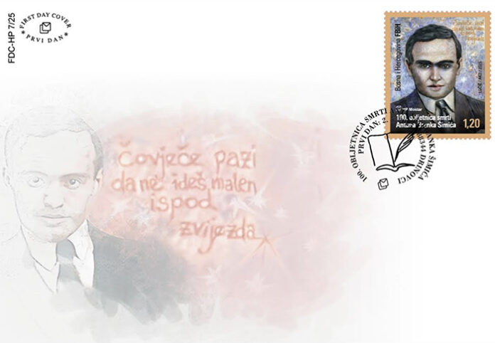 Hrvatska pošta (HP) Mostar tiskala je prigodne poštanske marke kojima je obilježila 100. obljetnicu smrti Antuna Branka Šimića, velikog hrvatskog pjesnika, kritičara i prevoditelja. Jedan od najistaknutijih hrvatskih pjesnika modernizma rođen je u Drinovcima 18. studenoga 1898. godine.