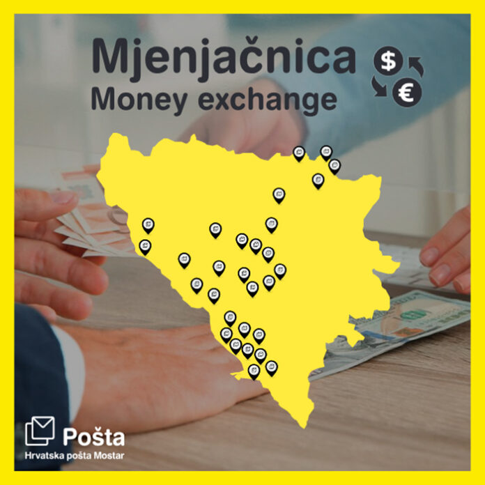Usluga mjenjačnice lako je dostupna na području cijele Bosne i Hercegovine kroz mrežu poštanskih ureda.