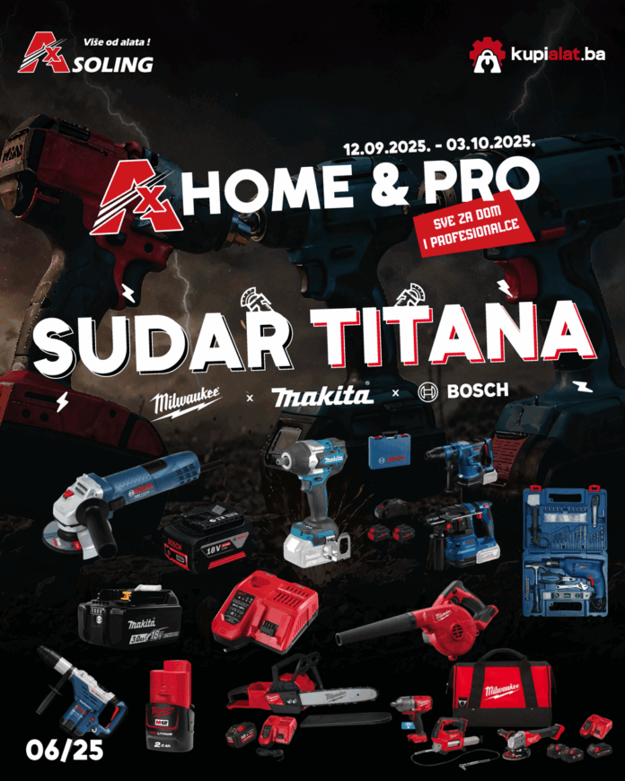 U svijetu stalno rastućih potreba potrošača, AX-Soling i www.kupialat.ba vam donosi novi akcijski letak “AX HOME & PRO 06/25 – SUDAR TITANA” za 9. mjesec 2025, koji nudi nevjerojatne ponude na raznovrsne proizvode.