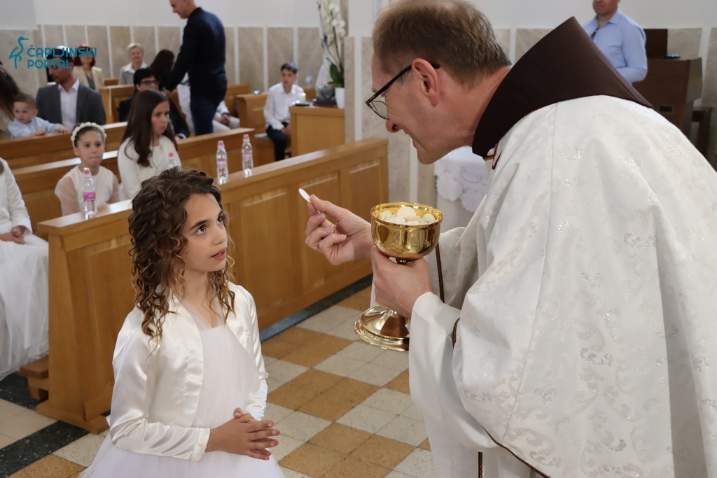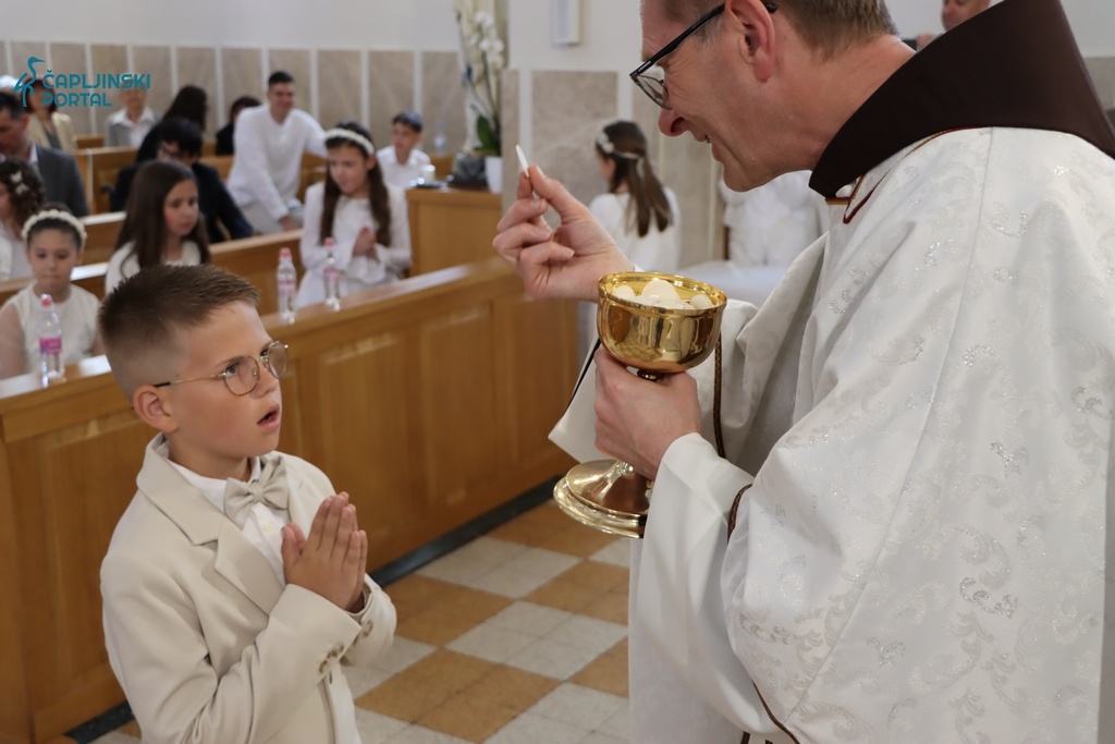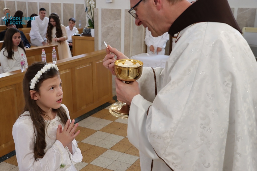 Nakon toga, djeca koja su prvi put pristupila stolu Gospodnjem, primila su sakrament Prve Svete Pričesti, s puno emocija i radosti.