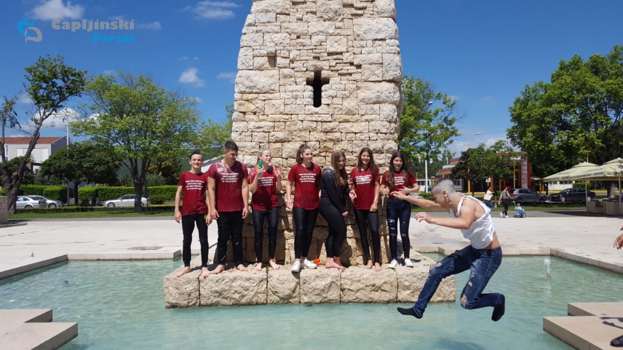 FOTO | Osnovnoškolci kupanjem u fontani započeli norijadu u Čapljini